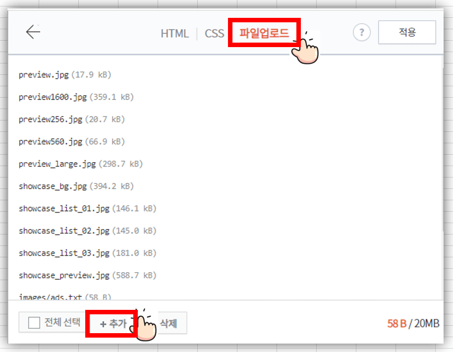 파일업로드를 클릭하시고 하단에 있는 +추가 버튼을 클릭하시고 미리 만들어 두었던 Ads.txt파일을 업로드하시면 됩니다.