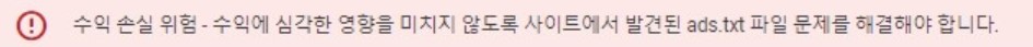 구글 애드센스를 연결하고 시작하기를 눌렀더니 위와 같은 경고 문구가 당신에게 나타나고 돈에 민감한 우리는 수익손실위험이라는 말에 놀랐지만 몇 번의 클릭과 조작으로 해결할 수 있으니 어려워 마시고 천천히 따라 하시기 바랍니다. 최대한 간단하고 명료한 방향으로 글을 쓰는 것이 필자의 소신입니다. 1분만 투자해 보세요