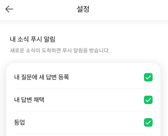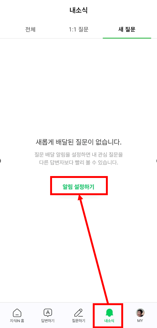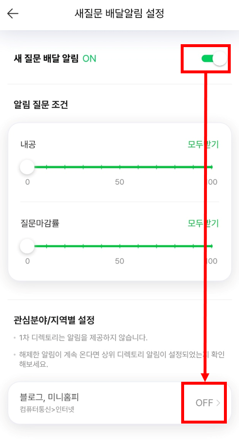 마지막으로 새 질문 등록 시 알림 받기를 ON으로 변경하세요.