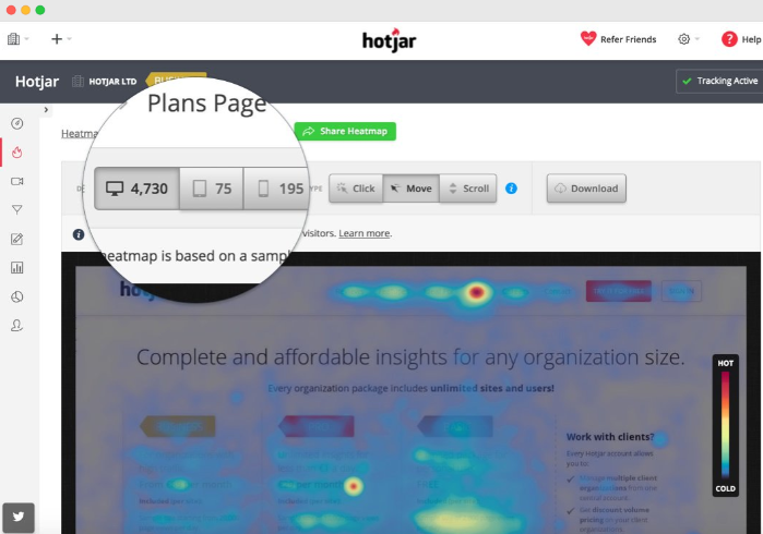Hotjar는 코딩 지식이 없어도 실시간으로 사이트에서 고객의 행동을 볼 수 있는 간단하면서도 강력한 최적화 도구입니다.