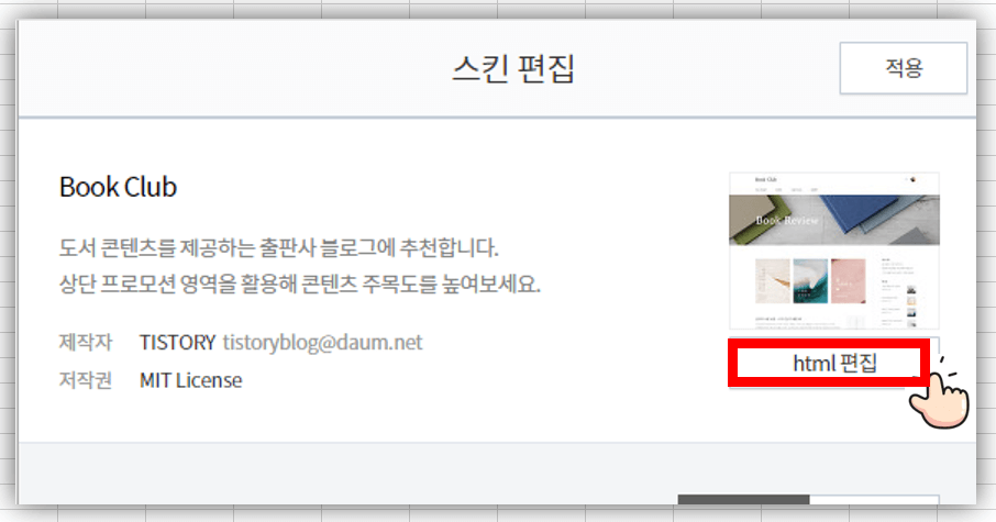 티스토리 관리자 페이지 > 꾸미기 > 스킨편집 > html 편집